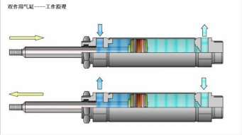 通常会加一个排气调节器来控制活塞运动速度。气缸的组成由缸筒、端盖、活塞、活塞杆、密封圈组成,一般气缸窜气是气缸内密封圈损坏,左右两腔相互窜气导致活塞没有压力。